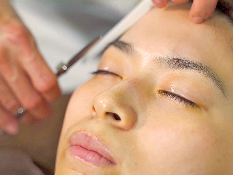 大人気の女性のお顔そり! お顔そり担当かよこが、あなたに合ったメニューを複合的に組み合わせて施術いたします。カーテンで仕切られた空間なので、安心してお任せください。
